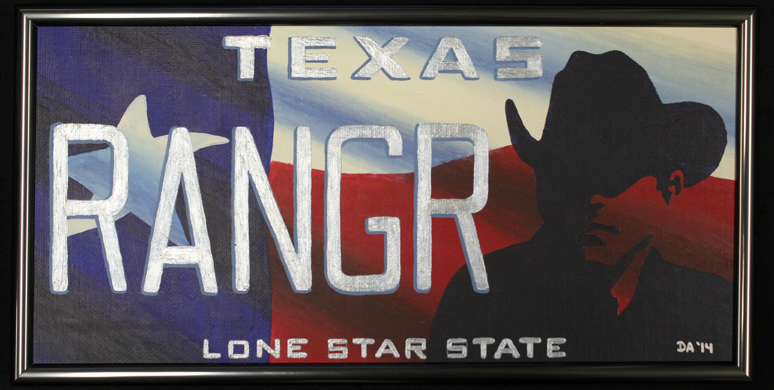 Texas Ranger License Plate Posted on May 14, 2014 “Texas Ranger License Plate” – By Dave Arruda Acrylic on canvas board (12x6in) with metal-wrap frame Share this: Click to share on X (Opens in new window) X Click to share on Facebook (Opens in new window) Facebook Like Loading... Related